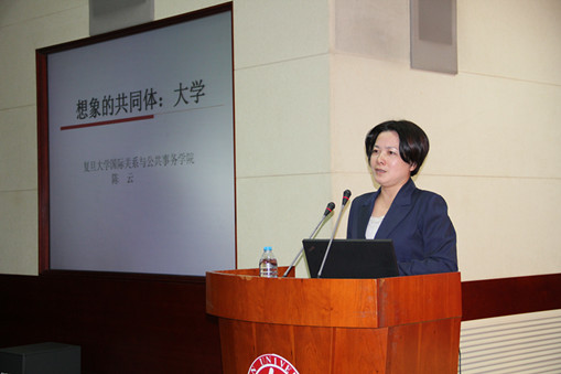 之后,书院优秀导师代表2013级志德书院的陈云老师向各位新生导师分享了她的导师工作经验。在题为“想象的共同体——大学”的演讲中,陈老师对大学、导师的应然定位作了分析:她认为大学作为想象的共同体,应当由作为共同体的每一份子共同凝聚大学的共同精神特质。她认为通识教育是导师了解学生的一扇窗户,是导师对学生形塑人格的良好平台,导师应当怀着一颗平常心,尽心地开展工作,努力帮助学生发现最好的自我。