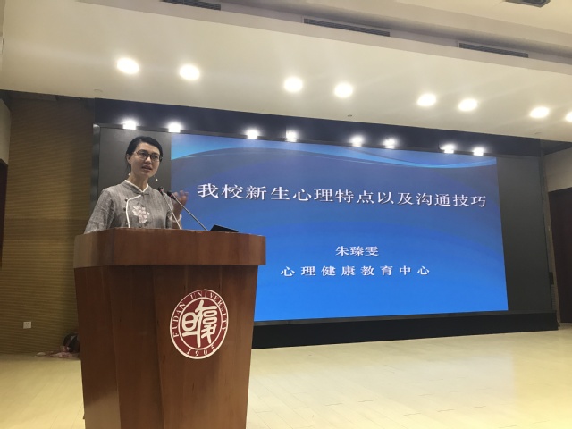 校心理健康教育中心副主任朱臻雯向与会老师介绍了新生心理特点及师生沟通技巧,为新生导师日后工作的开展提供了心理学层面的指导。