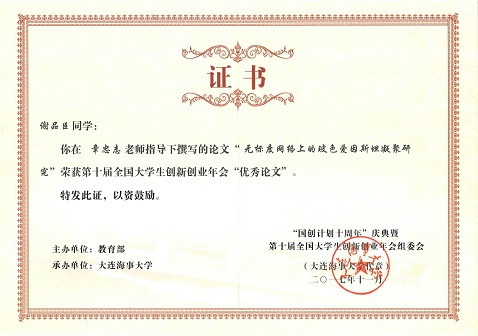 2006年,我校作为首批10所试点学校之一参加国家级大学生创新创业训练计划,至今共有1478个项目获得立项。自2008年教育部举办首届大学生创新创业年会以来,我校几乎每年都有项目入选,并多次获得优秀论文奖,今年成绩尤为喜人。药学院2013级本科生舒澜(指导教师为药学院孙涛老师)和物理学系2014级本科生谢品臣(指导教师为计算机科学技术学院章忠志老师)的论文从教育部直属高校和地方教育主管部门推荐的461篇学术论文中脱颖而出,参加年会论文交流,并最终都获得“优秀论文奖”(共21篇),舒澜还作为两位学生代表之一,在闭幕式上作了大会报告。这是继去年信息学院2012级本科生彭博在国创年会上作大会报告之后,复旦学子再次在全国舞台上展示我校本科生学术研究资助计划(FDUROP)的培养成果。