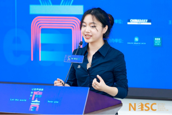 田海伦同学在已备演讲中以时下热门的ChatGPT为切入点,探究了人工智能对学生学习、人类认知、创新力乃至整个人类文明的颠覆性影响,演讲由浅入深,层层递进,呈现风格明快活泼。在即兴环节,她批判了约定俗成的“社会时钟”对人的束缚,并呼吁跳出僵化框架、活出多元精彩,发人深省,不落俗套。在问答环节她才思敏捷,智趣横生,遣词造句复杂多变,展现了扎实的英语语言基础和睿智机敏的台风,整场表现流畅大方,各个环节应对自如,赢得了现场听众的阵阵掌声。