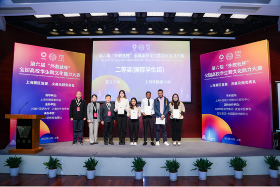 第六届“外教社杯”全国高校学生跨文化能力大赛上海赛区决赛于11月11日-12日在上海外语教育出版社举行。本届大赛我校派出的中国学生组别和国际学生组别两支代表队再次载誉而归,分别获得中国学生组别特等奖、最佳案例奖单项奖以及国际学生组别二等奖(第二名)的好成绩,双双成功晋级全国总决赛,与此同时我校选手在此项赛事上海赛区决赛中创四连冠佳绩!