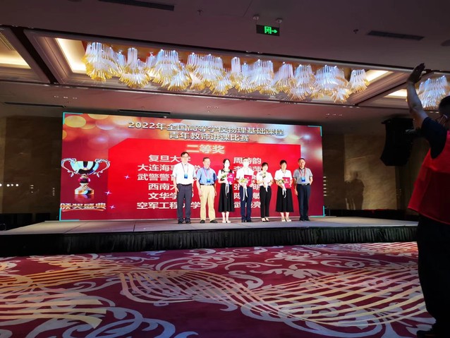2022年8月6日全国高等学校物理基础课程青年教师讲课比赛在东北师范大学(长春)举行,来自全国六大赛区取得决赛资格的21名教师在赛场上做了精彩的讲课展示,最终我校物理学系周诗韵老师凭借扎实的基本功和出色的发挥,获得了本次比赛全国二等奖(总排名第五名,二等奖第一)。周诗韵老师在之前进行的上海市、华东区选拔赛上,都获得了第一名。